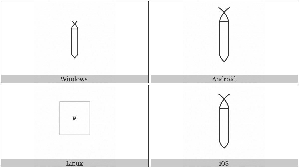 The image below shows how the “Egyptian Hieroglyph L008” symbol might look like on different operating systems. If the font in which this web site is displayed does not contain the symbol and there is no fallback font able to render it, you can use the image below to get an idea of what it should look like.