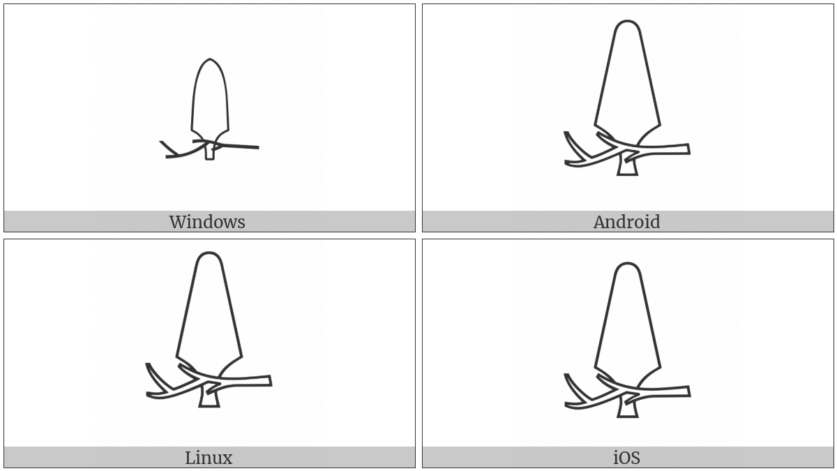 The image below shows how the “Egyptian Hieroglyph M001A” symbol might look like on different operating systems. If the font in which this web site is displayed does not contain the symbol and there is no fallback font able to render it, you can use the image below to get an idea of what it should look like.