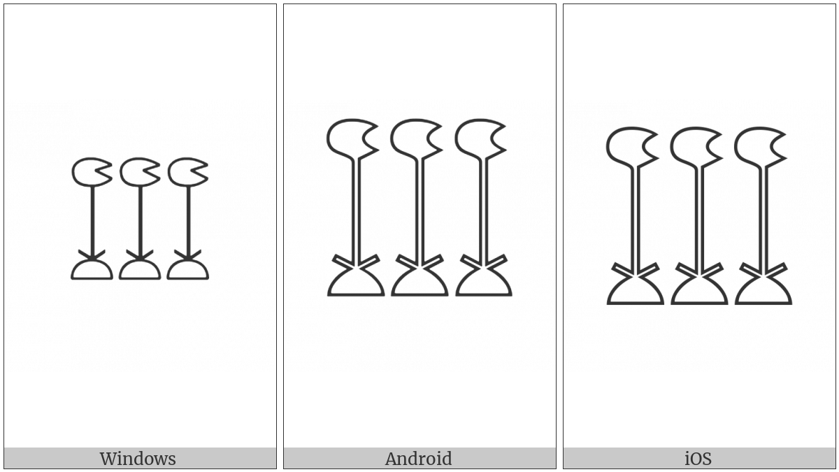 The image below shows how the “Egyptian Hieroglyph M012B” symbol might look like on different operating systems. If the font in which this web site is displayed does not contain the symbol and there is no fallback font able to render it, you can use the image below to get an idea of what it should look like.