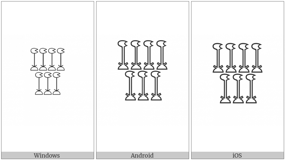 The image below shows how the “Egyptian Hieroglyph M012F” symbol might look like on different operating systems. If the font in which this web site is displayed does not contain the symbol and there is no fallback font able to render it, you can use the image below to get an idea of what it should look like.
