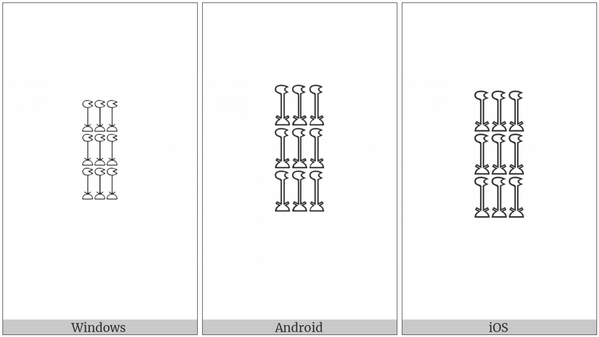 The image below shows how the “Egyptian Hieroglyph M012H” symbol might look like on different operating systems. If the font in which this web site is displayed does not contain the symbol and there is no fallback font able to render it, you can use the image below to get an idea of what it should look like.