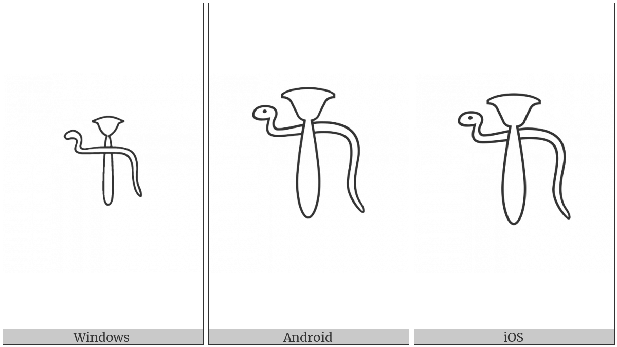 The image below shows how the “Egyptian Hieroglyph M014” symbol might look like on different operating systems. If the font in which this web site is displayed does not contain the symbol and there is no fallback font able to render it, you can use the image below to get an idea of what it should look like.