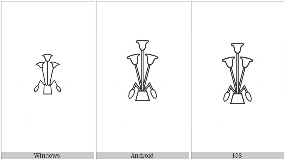 The image below shows how the “Egyptian Hieroglyph M015” symbol might look like on different operating systems. If the font in which this web site is displayed does not contain the symbol and there is no fallback font able to render it, you can use the image below to get an idea of what it should look like.