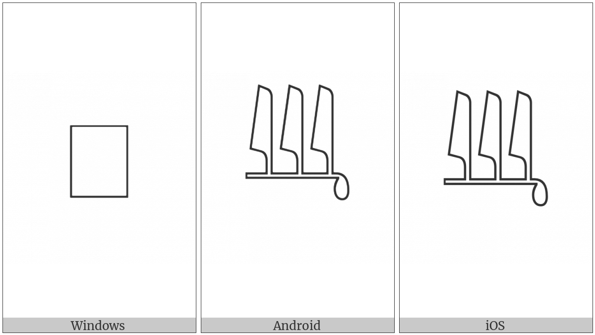 The image below shows how the “Egyptian Hieroglyph M021” symbol might look like on different operating systems. If the font in which this web site is displayed does not contain the symbol and there is no fallback font able to render it, you can use the image below to get an idea of what it should look like.