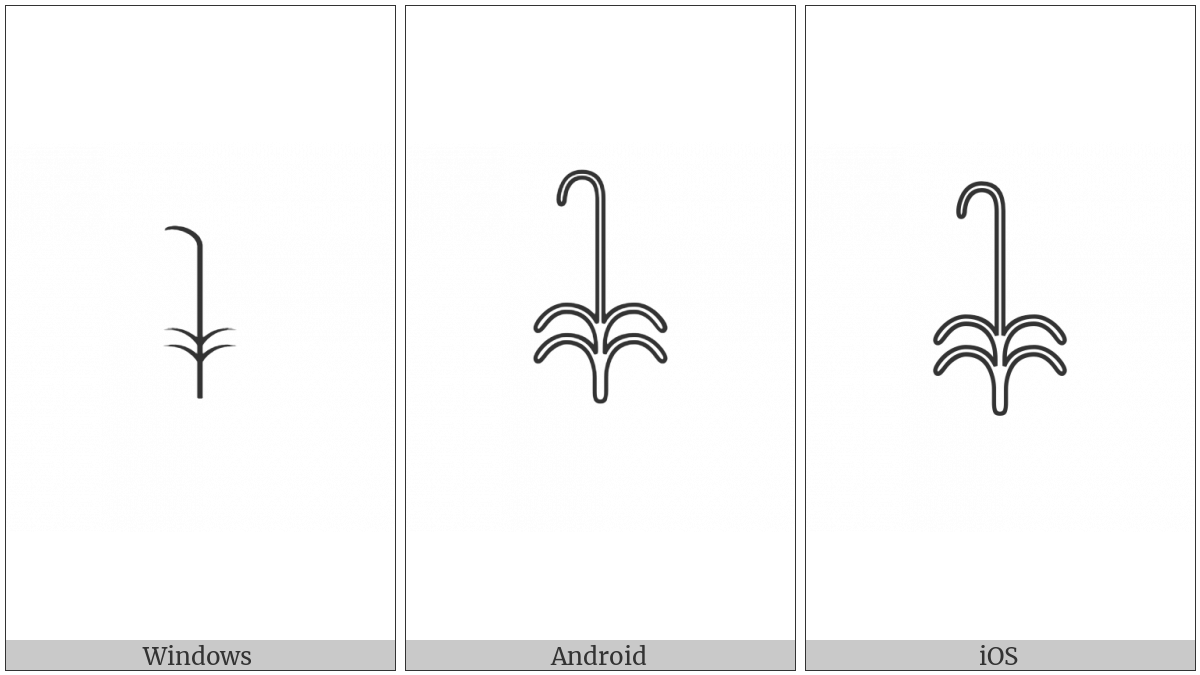 The image below shows how the “Egyptian Hieroglyph M023” symbol might look like on different operating systems. If the font in which this web site is displayed does not contain the symbol and there is no fallback font able to render it, you can use the image below to get an idea of what it should look like.