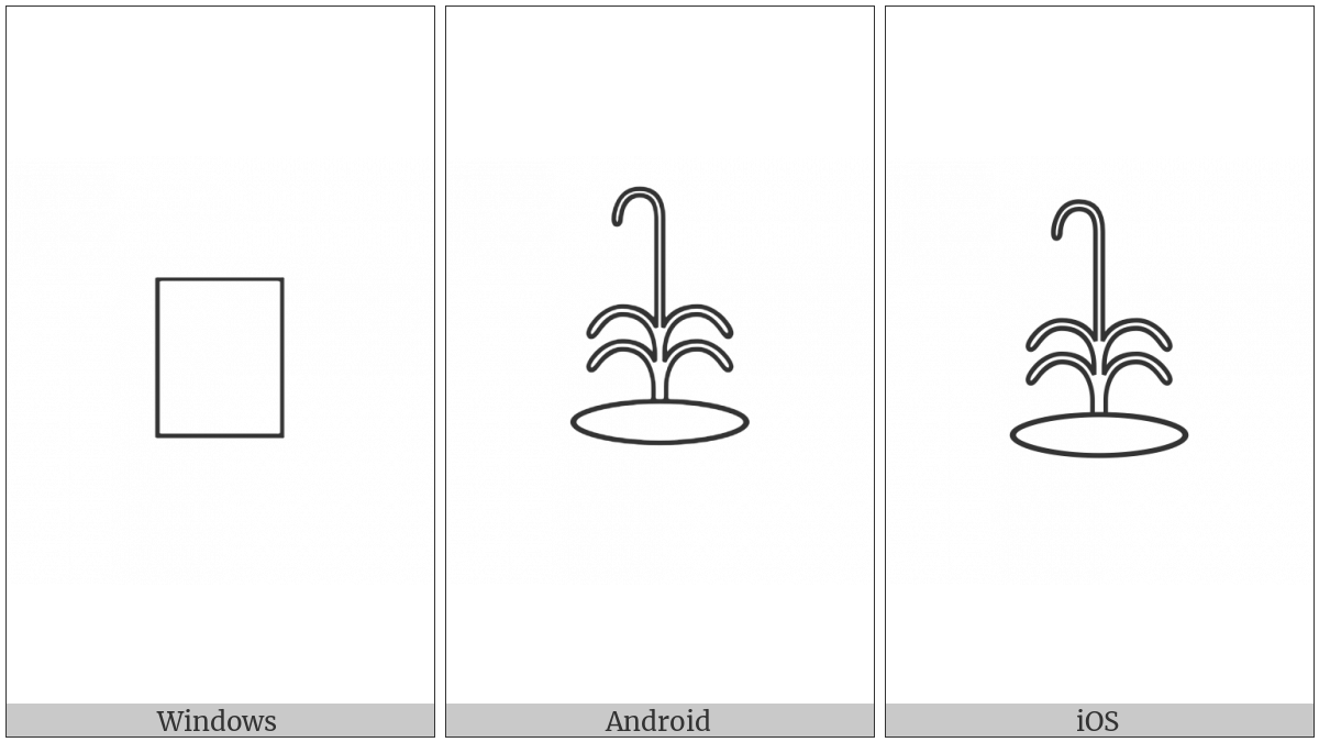 The image below shows how the “Egyptian Hieroglyph M024” symbol might look like on different operating systems. If the font in which this web site is displayed does not contain the symbol and there is no fallback font able to render it, you can use the image below to get an idea of what it should look like.