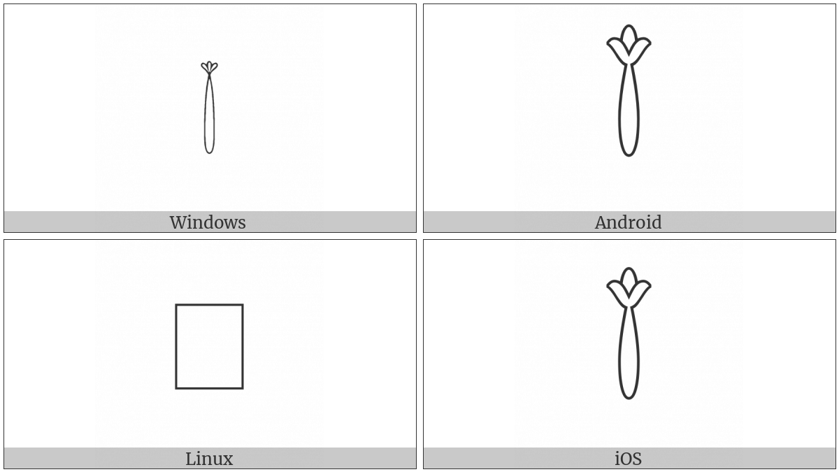 The image below shows how the “Egyptian Hieroglyph M024A” symbol might look like on different operating systems. If the font in which this web site is displayed does not contain the symbol and there is no fallback font able to render it, you can use the image below to get an idea of what it should look like.