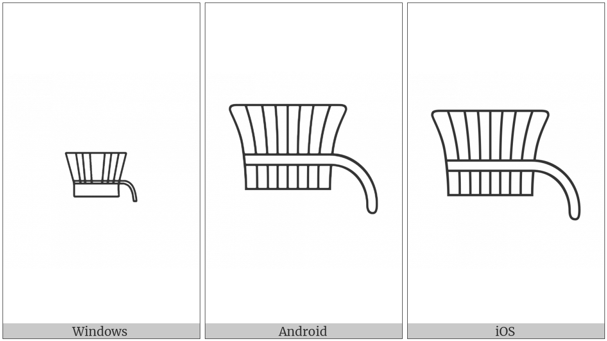 The image below shows how the “Egyptian Hieroglyph M038” symbol might look like on different operating systems. If the font in which this web site is displayed does not contain the symbol and there is no fallback font able to render it, you can use the image below to get an idea of what it should look like.