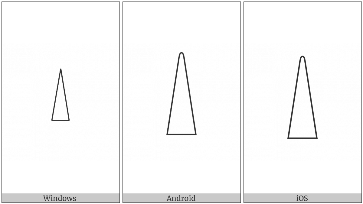 The image below shows how the “Egyptian Hieroglyph M044” symbol might look like on different operating systems. If the font in which this web site is displayed does not contain the symbol and there is no fallback font able to render it, you can use the image below to get an idea of what it should look like.