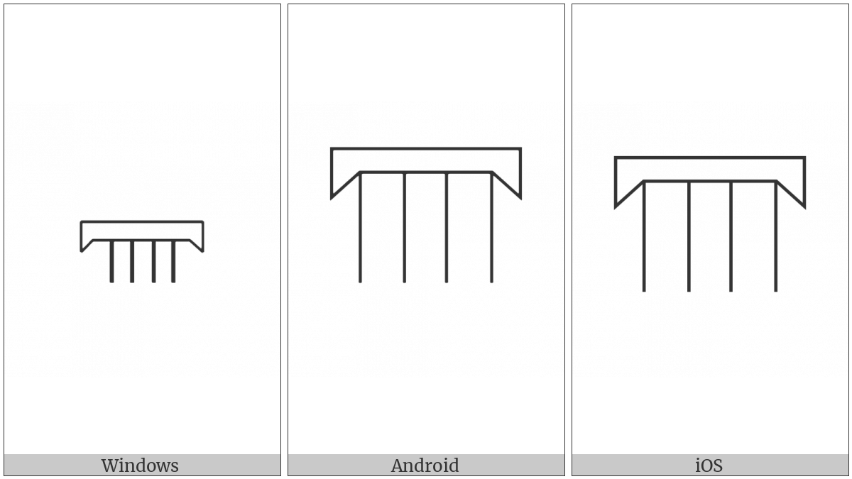 The image below shows how the “Egyptian Hieroglyph N004” symbol might look like on different operating systems. If the font in which this web site is displayed does not contain the symbol and there is no fallback font able to render it, you can use the image below to get an idea of what it should look like.