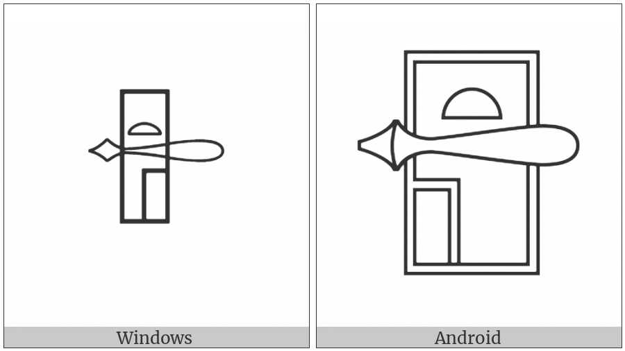 The image below shows how the “Egyptian Hieroglyph O008” symbol might look like on different operating systems. If the font in which this web site is displayed does not contain the symbol and there is no fallback font able to render it, you can use the image below to get an idea of what it should look like.