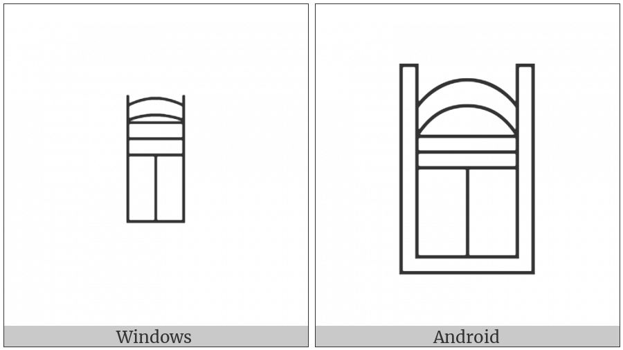 The image below shows how the “Egyptian Hieroglyph O020A” symbol might look like on different operating systems. If the font in which this web site is displayed does not contain the symbol and there is no fallback font able to render it, you can use the image below to get an idea of what it should look like.