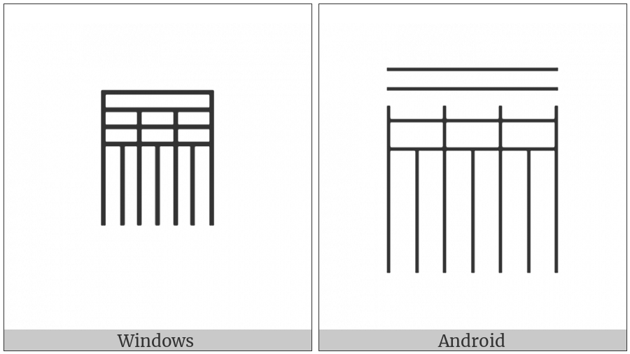 The image below shows how the “Egyptian Hieroglyph O033” symbol might look like on different operating systems. If the font in which this web site is displayed does not contain the symbol and there is no fallback font able to render it, you can use the image below to get an idea of what it should look like.