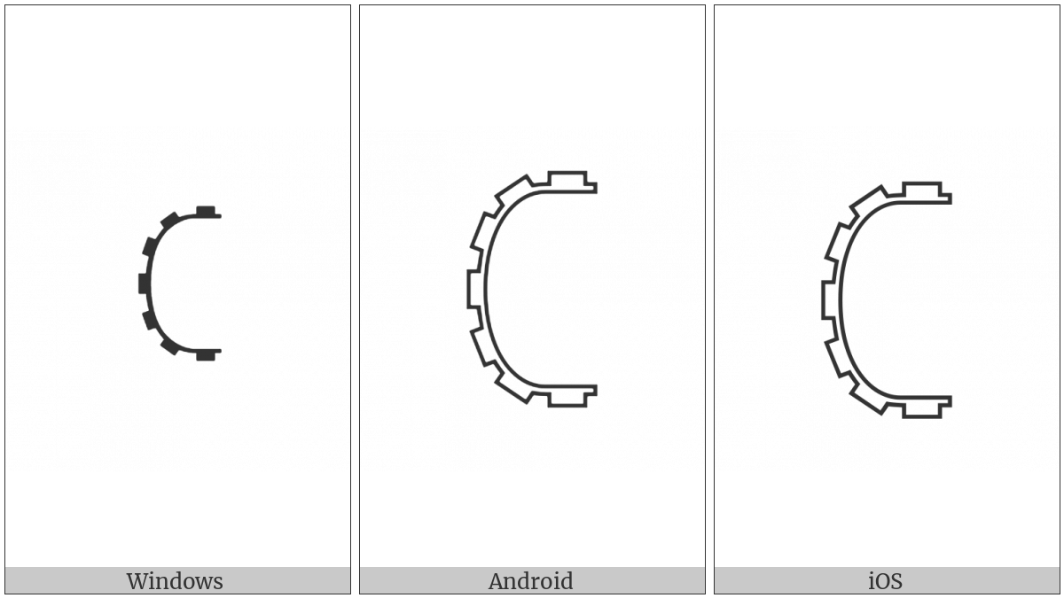 The image below shows how the “Egyptian Hieroglyph O036A” symbol might look like on different operating systems. If the font in which this web site is displayed does not contain the symbol and there is no fallback font able to render it, you can use the image below to get an idea of what it should look like.