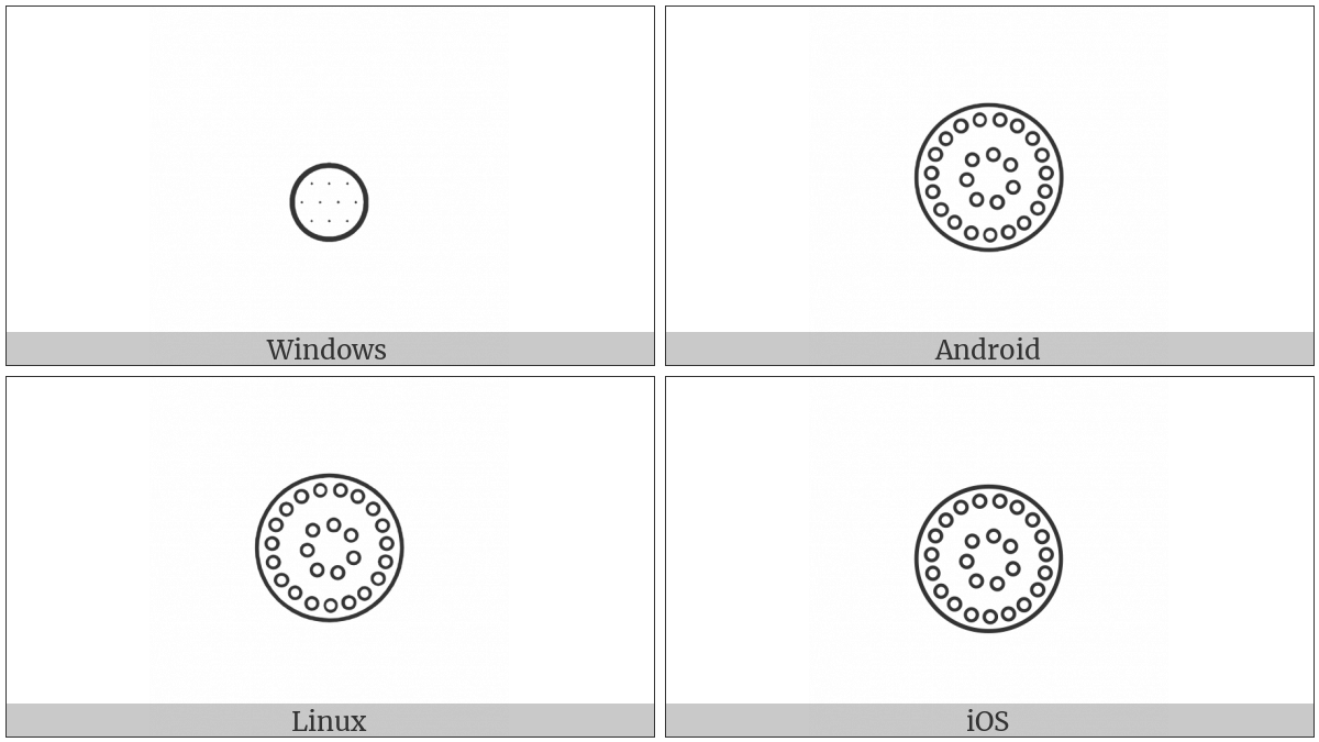 The image below shows how the “Egyptian Hieroglyph O050” symbol might look like on different operating systems. If the font in which this web site is displayed does not contain the symbol and there is no fallback font able to render it, you can use the image below to get an idea of what it should look like.