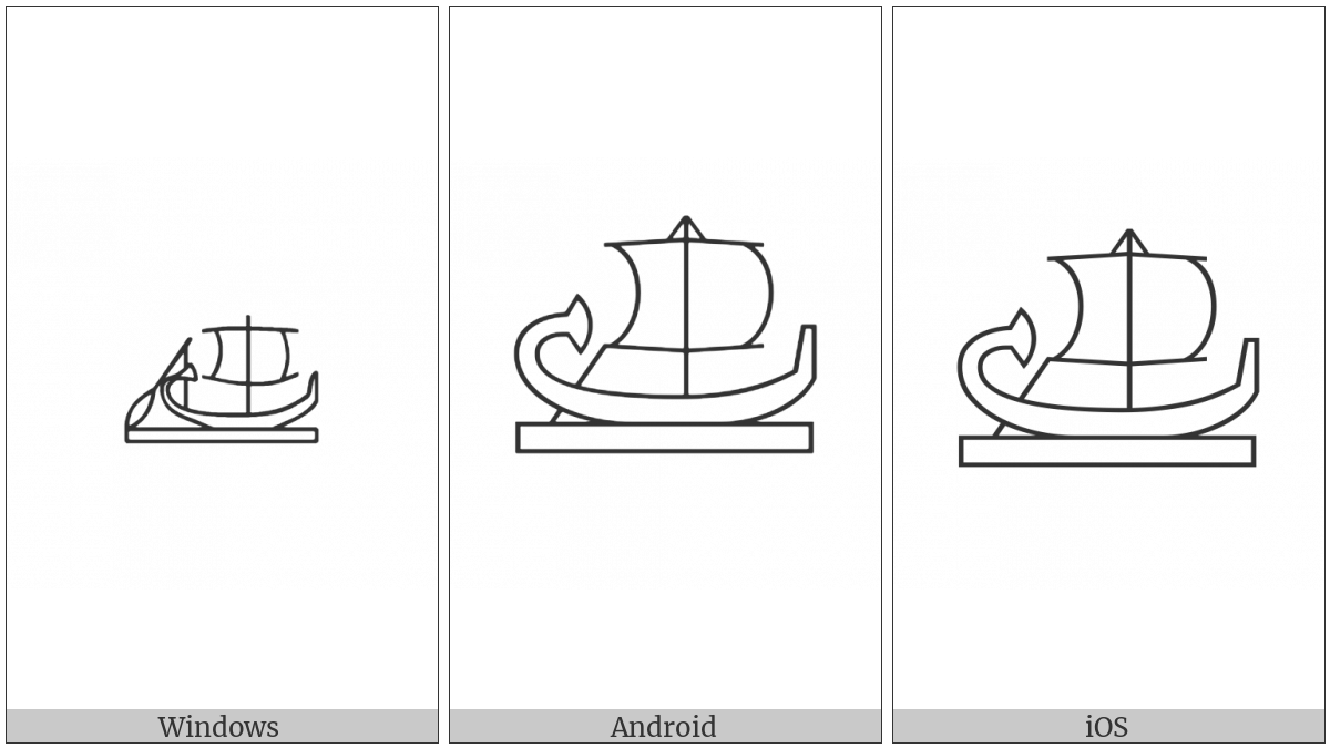 The image below shows how the “Egyptian Hieroglyph P002” symbol might look like on different operating systems. If the font in which this web site is displayed does not contain the symbol and there is no fallback font able to render it, you can use the image below to get an idea of what it should look like.