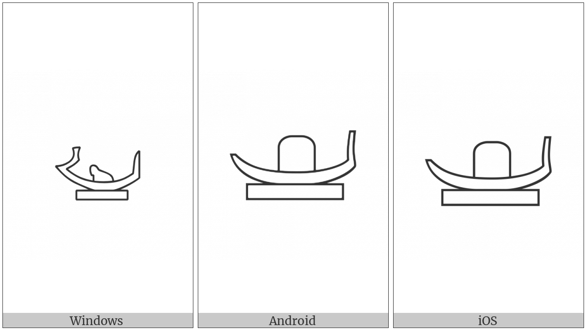 The image below shows how the “Egyptian Hieroglyph P003A” symbol might look like on different operating systems. If the font in which this web site is displayed does not contain the symbol and there is no fallback font able to render it, you can use the image below to get an idea of what it should look like.