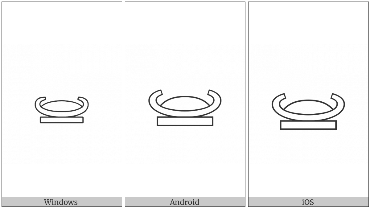 The image below shows how the “Egyptian Hieroglyph P004” symbol might look like on different operating systems. If the font in which this web site is displayed does not contain the symbol and there is no fallback font able to render it, you can use the image below to get an idea of what it should look like.