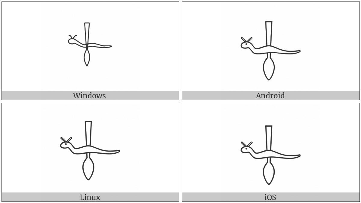 The image below shows how the “Egyptian Hieroglyph P009” symbol might look like on different operating systems. If the font in which this web site is displayed does not contain the symbol and there is no fallback font able to render it, you can use the image below to get an idea of what it should look like.