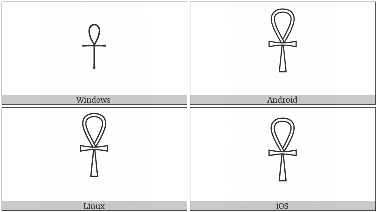 The image below shows how the “Egyptian Hieroglyph S034” symbol might look like on different operating systems. If the font in which this web site is displayed does not contain the symbol and there is no fallback font able to render it, you can use the image below to get an idea of what it should look like.