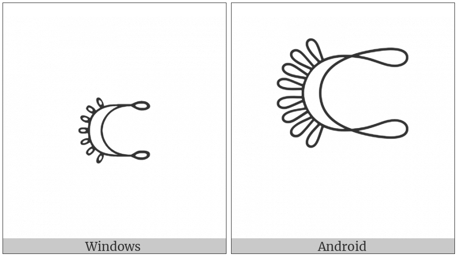 The image below shows how the “Egyptian Hieroglyph T024” symbol might look like on different operating systems. If the font in which this web site is displayed does not contain the symbol and there is no fallback font able to render it, you can use the image below to get an idea of what it should look like.