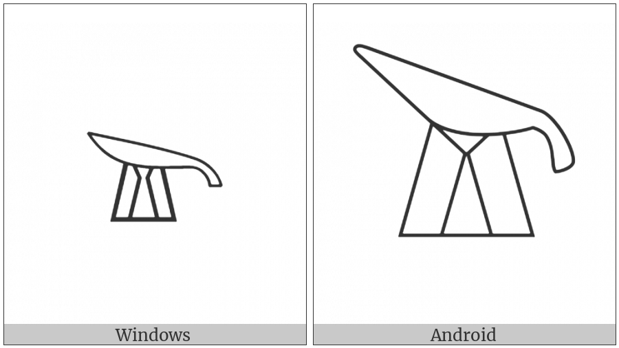 The image below shows how the “Egyptian Hieroglyph T029” symbol might look like on different operating systems. If the font in which this web site is displayed does not contain the symbol and there is no fallback font able to render it, you can use the image below to get an idea of what it should look like.