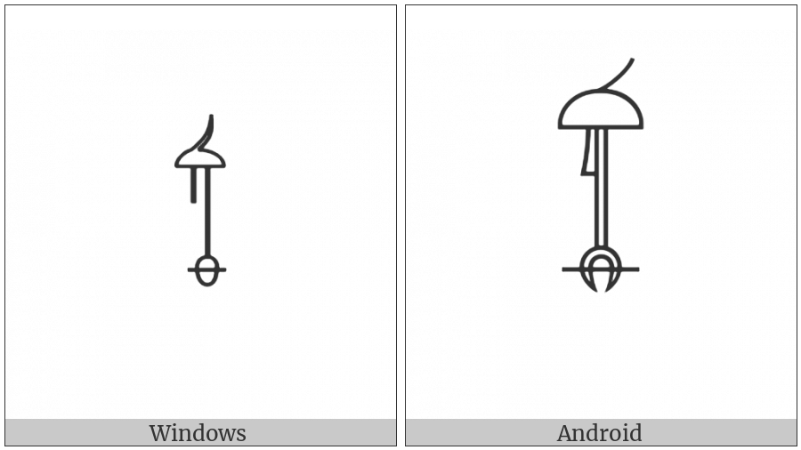 The image below shows how the “Egyptian Hieroglyph U024” symbol might look like on different operating systems. If the font in which this web site is displayed does not contain the symbol and there is no fallback font able to render it, you can use the image below to get an idea of what it should look like.