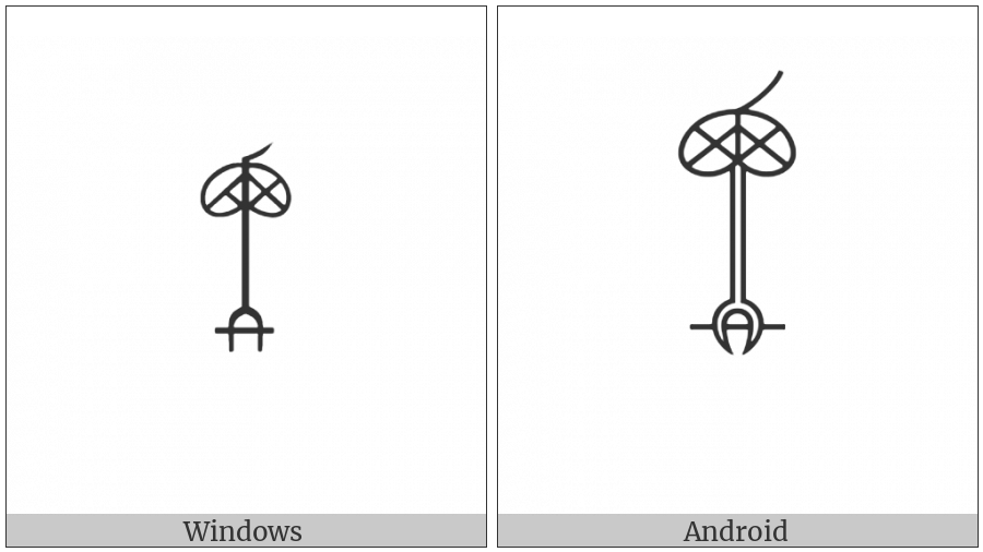 The image below shows how the “Egyptian Hieroglyph U025” symbol might look like on different operating systems. If the font in which this web site is displayed does not contain the symbol and there is no fallback font able to render it, you can use the image below to get an idea of what it should look like.