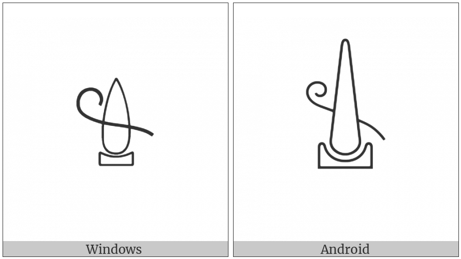 The image below shows how the “Egyptian Hieroglyph U029A” symbol might look like on different operating systems. If the font in which this web site is displayed does not contain the symbol and there is no fallback font able to render it, you can use the image below to get an idea of what it should look like.