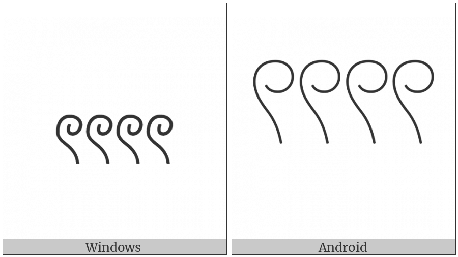 The image below shows how the “Egyptian Hieroglyph V001C” symbol might look like on different operating systems. If the font in which this web site is displayed does not contain the symbol and there is no fallback font able to render it, you can use the image below to get an idea of what it should look like.