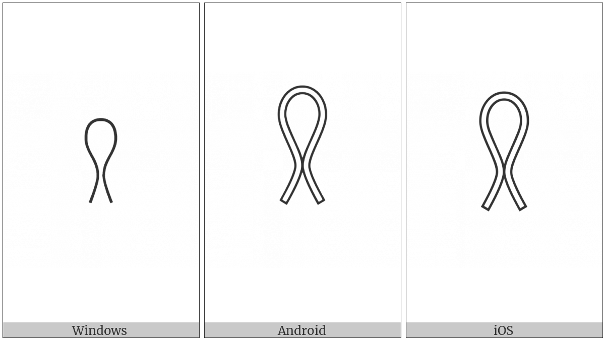 The image below shows how the “Egyptian Hieroglyph V007A” symbol might look like on different operating systems. If the font in which this web site is displayed does not contain the symbol and there is no fallback font able to render it, you can use the image below to get an idea of what it should look like.