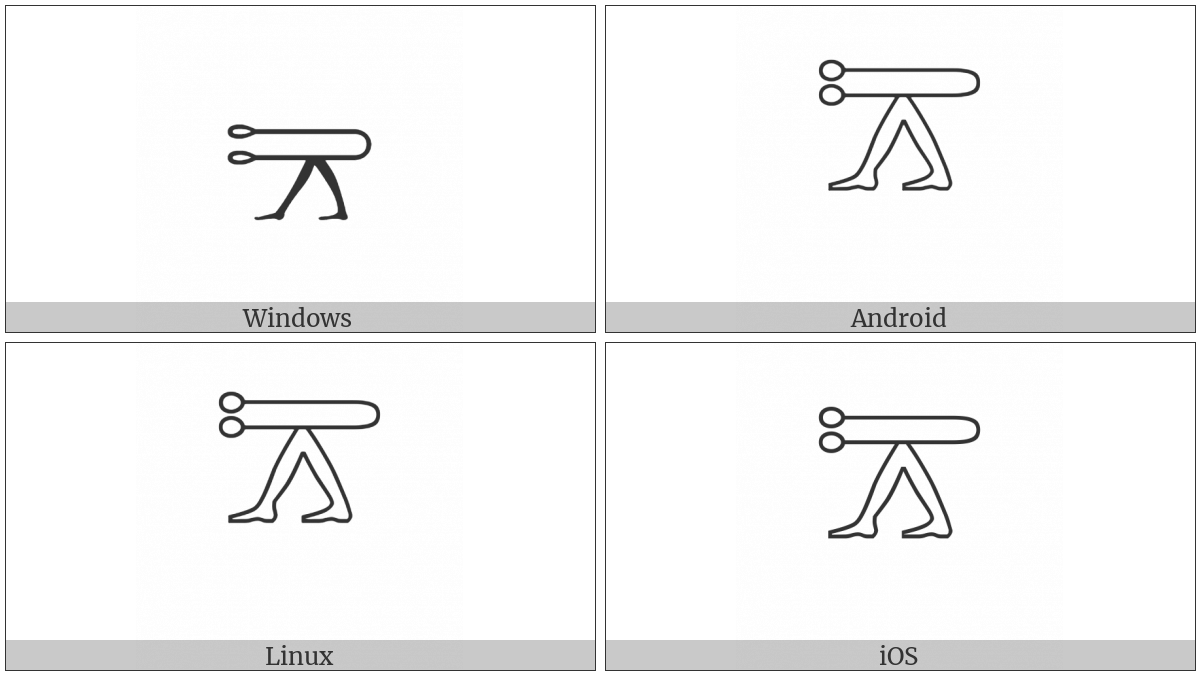 The image below shows how the “Egyptian Hieroglyph V015” symbol might look like on different operating systems. If the font in which this web site is displayed does not contain the symbol and there is no fallback font able to render it, you can use the image below to get an idea of what it should look like.