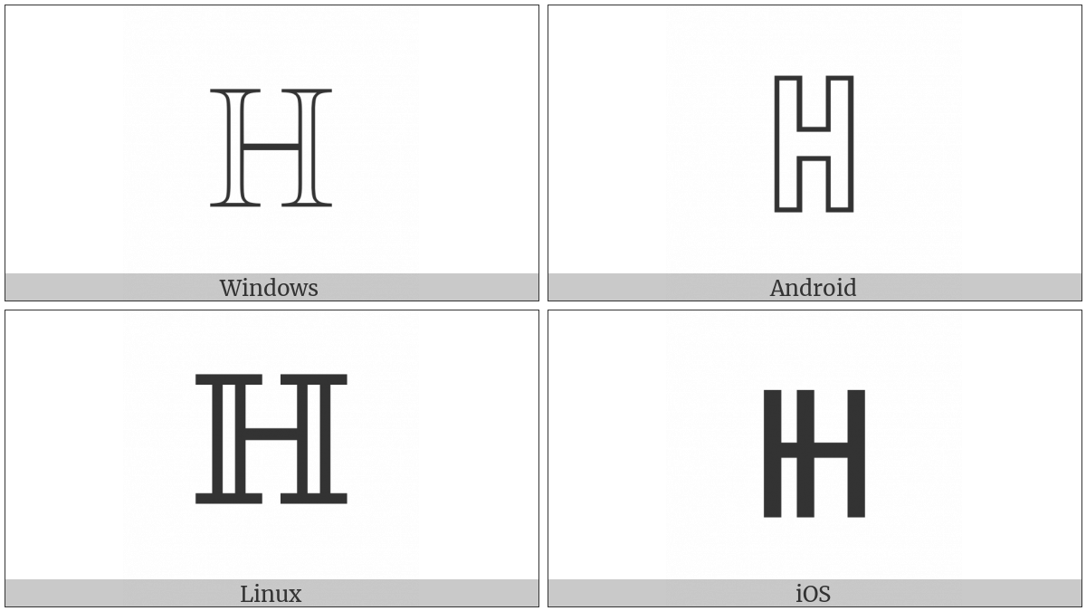 The image below shows how the “Double-Struck Capital H” symbol might look like on different operating systems. If the font in which this web site is displayed does not contain the symbol and there is no fallback font able to render it, you can use the image below to get an idea of what it should look like.