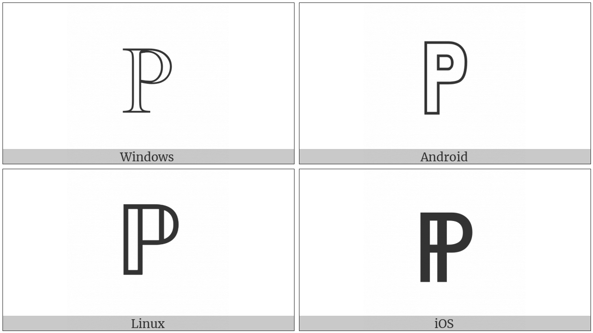 The image below shows how the “Double-Struck Capital P” symbol might look like on different operating systems. If the font in which this web site is displayed does not contain the symbol and there is no fallback font able to render it, you can use the image below to get an idea of what it should look like.