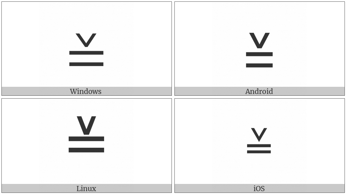 The image below shows how the “Equiangular To” symbol might look like on different operating systems. If the font in which this web site is displayed does not contain the symbol and there is no fallback font able to render it, you can use the image below to get an idea of what it should look like.