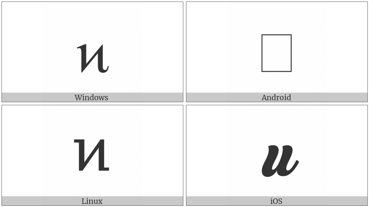 The image below shows how the “Greek Small Letter Pamphylian Digamma” symbol might look like on different operating systems. If the font in which this web site is displayed does not contain the symbol and there is no fallback font able to render it, you can use the image below to get an idea of what it should look like.