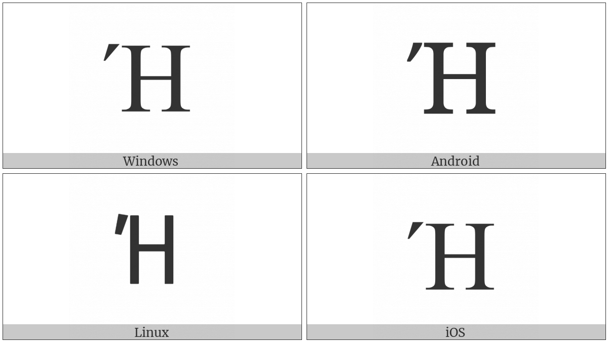 “Greek Capital Letter Eta With Tonos” on various operating systems