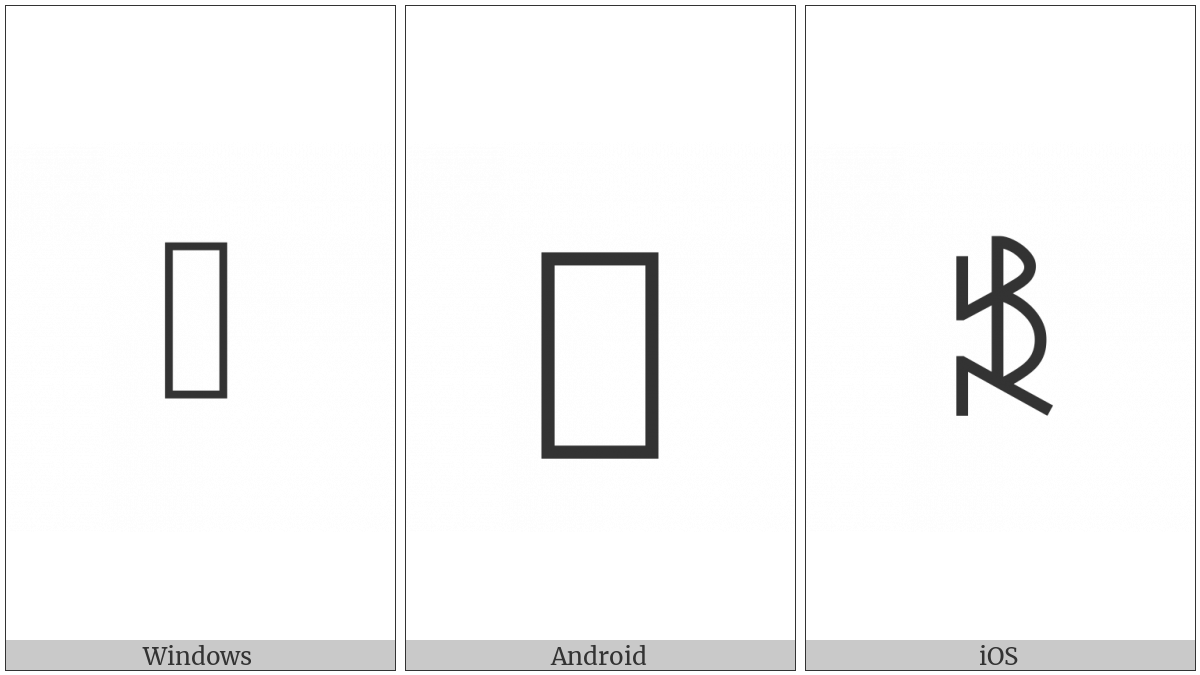 The image below shows how the “Bamum Letter Phase-A Keukeutnda” symbol might look like on different operating systems. If the font in which this web site is displayed does not contain the symbol and there is no fallback font able to render it, you can use the image below to get an idea of what it should look like.