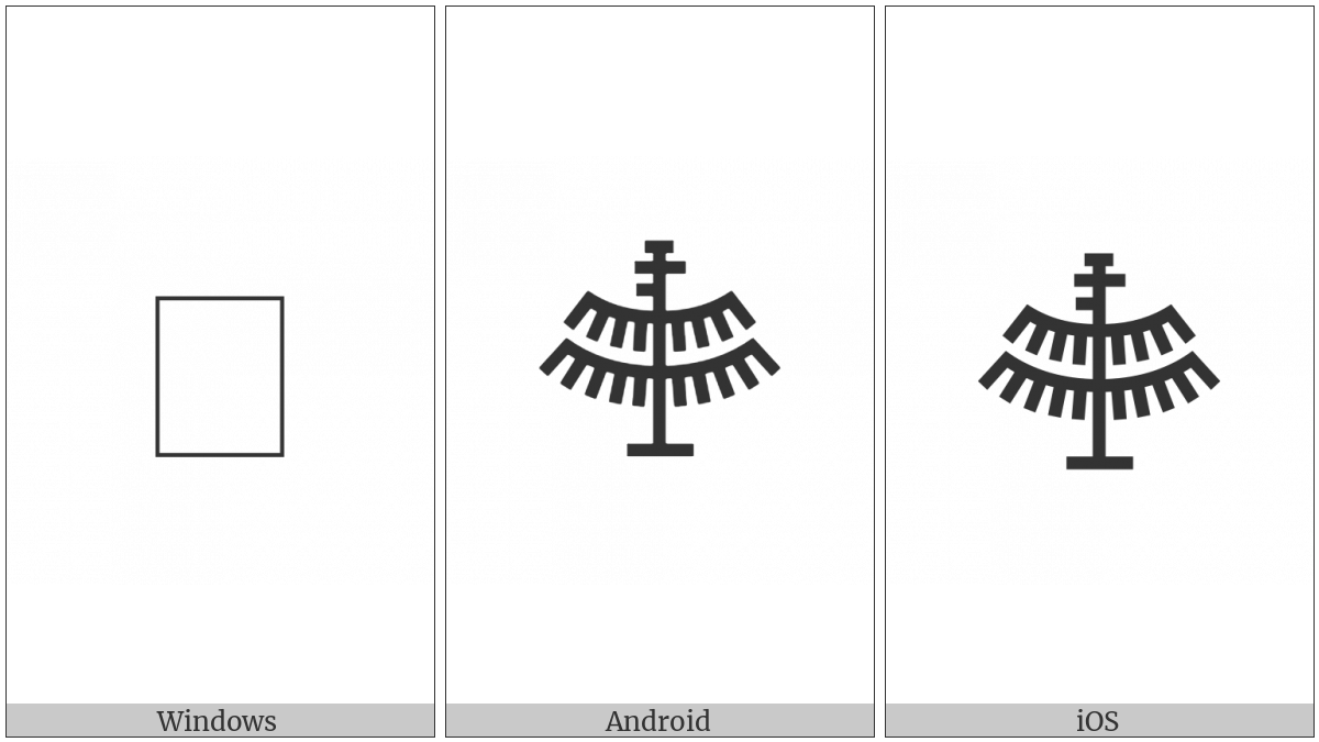 The image below shows how the “Bamum Letter Phase-A Nkaarae” symbol might look like on different operating systems. If the font in which this web site is displayed does not contain the symbol and there is no fallback font able to render it, you can use the image below to get an idea of what it should look like.