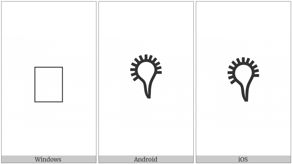The image below shows how the “Bamum Letter Phase-A Teuaen” symbol might look like on different operating systems. If the font in which this web site is displayed does not contain the symbol and there is no fallback font able to render it, you can use the image below to get an idea of what it should look like.