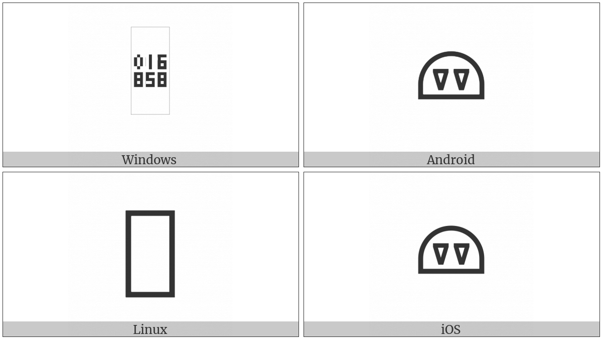 The image below shows how the “Bamum Letter Phase-B Tu Maemgbiee” symbol might look like on different operating systems. If the font in which this web site is displayed does not contain the symbol and there is no fallback font able to render it, you can use the image below to get an idea of what it should look like.