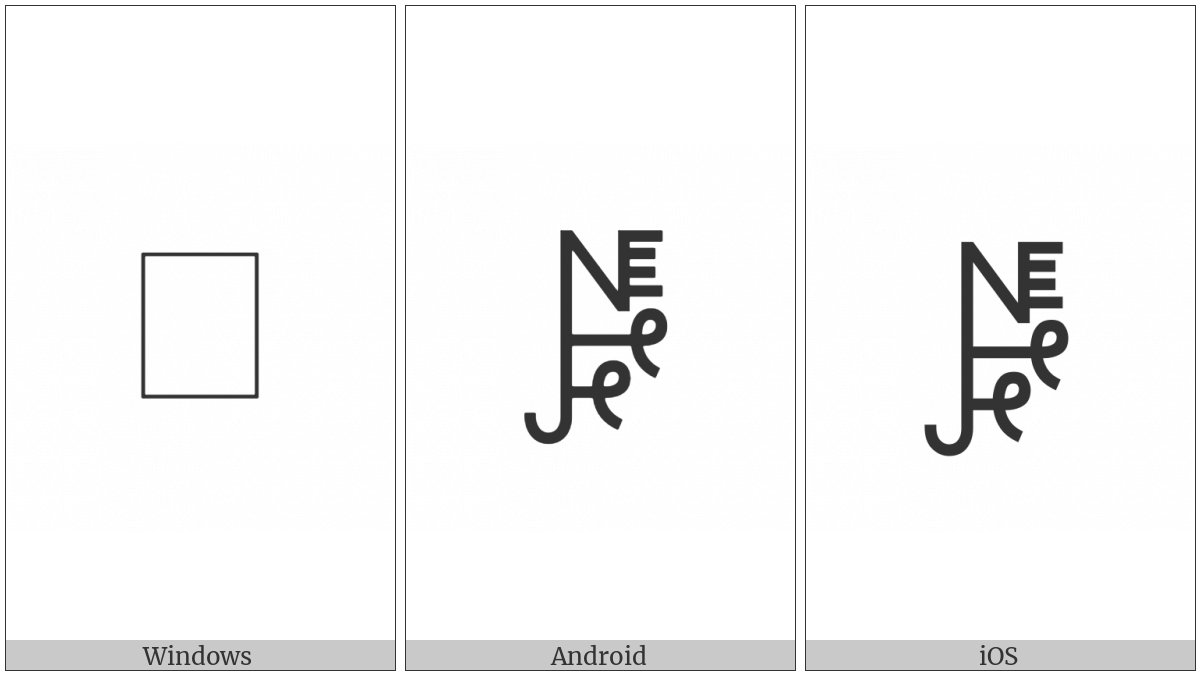 The image below shows how the “Bamum Letter Phase-B Kam” symbol might look like on different operating systems. If the font in which this web site is displayed does not contain the symbol and there is no fallback font able to render it, you can use the image below to get an idea of what it should look like.