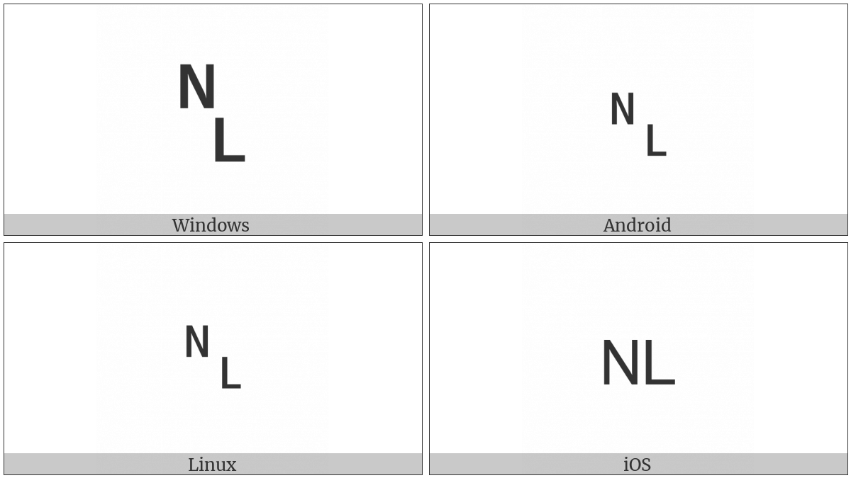 The image below shows how the “Symbol For Newline” symbol might look like on different operating systems. If the font in which this web site is displayed does not contain the symbol and there is no fallback font able to render it, you can use the image below to get an idea of what it should look like.