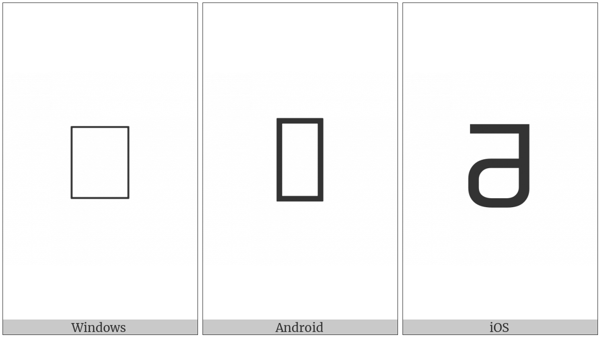 The image below shows how the “Pahawh Hmong Vowel Keev” symbol might look like on different operating systems. If the font in which this web site is displayed does not contain the symbol and there is no fallback font able to render it, you can use the image below to get an idea of what it should look like.