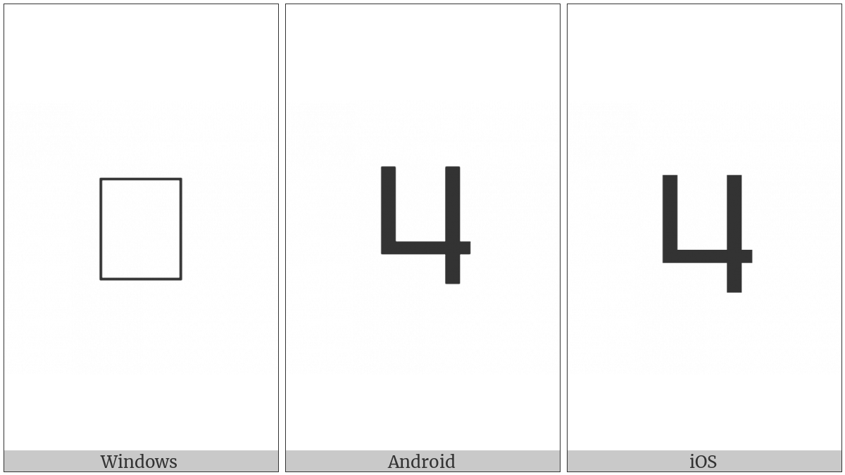 The image below shows how the “Pahawh Hmong Consonant Hlau” symbol might look like on different operating systems. If the font in which this web site is displayed does not contain the symbol and there is no fallback font able to render it, you can use the image below to get an idea of what it should look like.