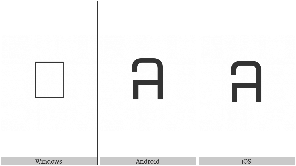The image below shows how the “Pahawh Hmong Consonant Nchau” symbol might look like on different operating systems. If the font in which this web site is displayed does not contain the symbol and there is no fallback font able to render it, you can use the image below to get an idea of what it should look like.