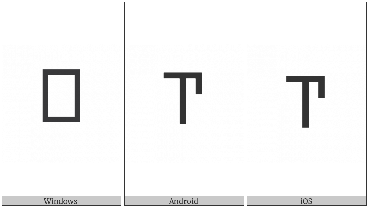 The image below shows how the “Miao Letter Yi Tta” symbol might look like on different operating systems. If the font in which this web site is displayed does not contain the symbol and there is no fallback font able to render it, you can use the image below to get an idea of what it should look like.