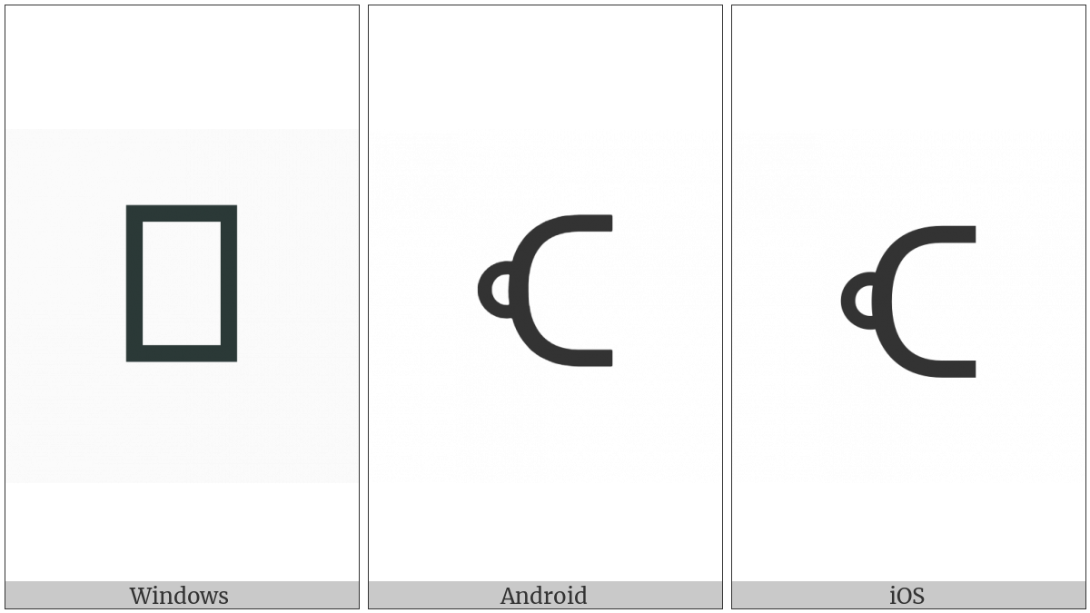 The image below shows how the “Miao Letter Nha” symbol might look like on different operating systems. If the font in which this web site is displayed does not contain the symbol and there is no fallback font able to render it, you can use the image below to get an idea of what it should look like.