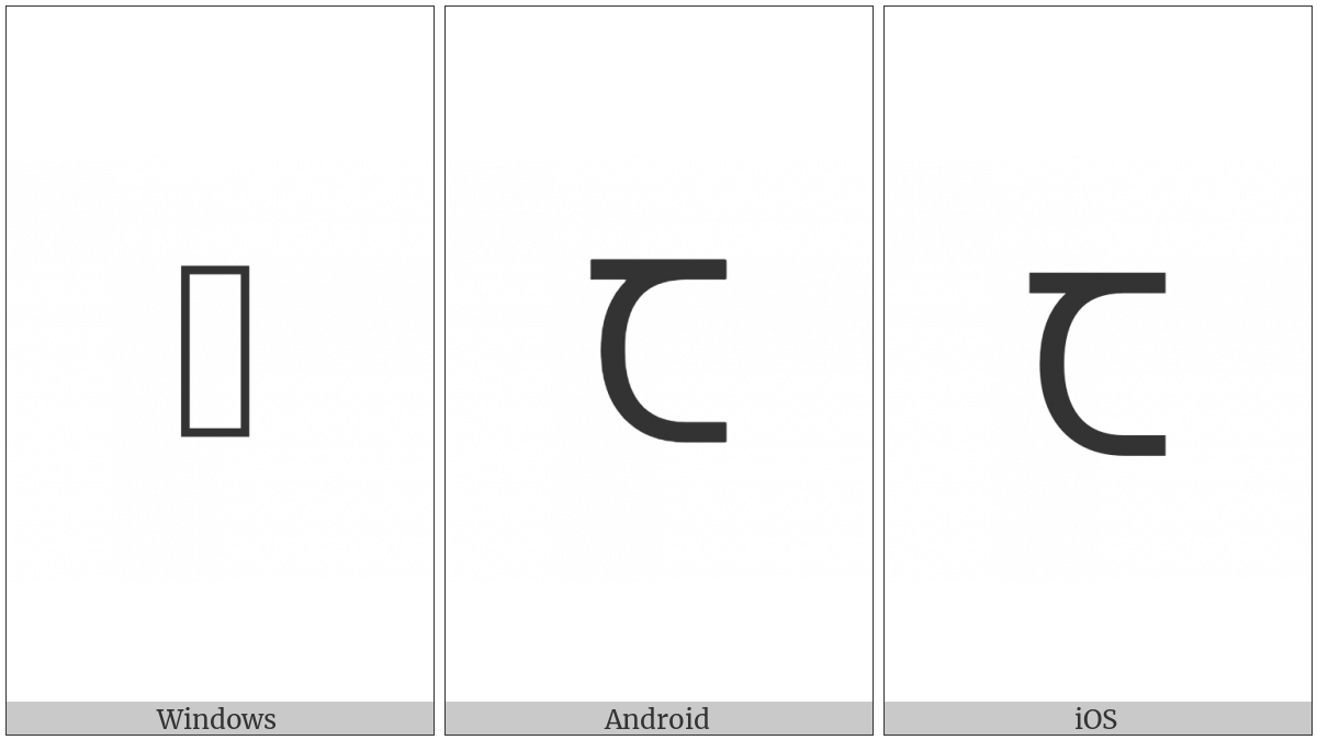 The image below shows how the “Miao Letter Yi Nna” symbol might look like on different operating systems. If the font in which this web site is displayed does not contain the symbol and there is no fallback font able to render it, you can use the image below to get an idea of what it should look like.