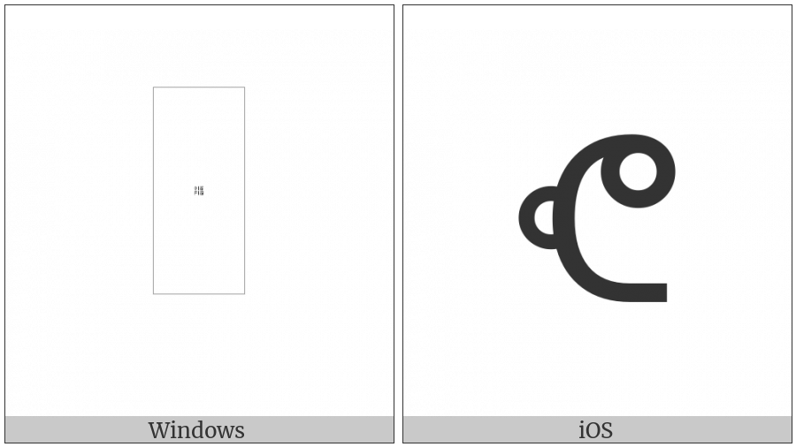 The image below shows how the “Miao Letter Nnha” symbol might look like on different operating systems. If the font in which this web site is displayed does not contain the symbol and there is no fallback font able to render it, you can use the image below to get an idea of what it should look like.
